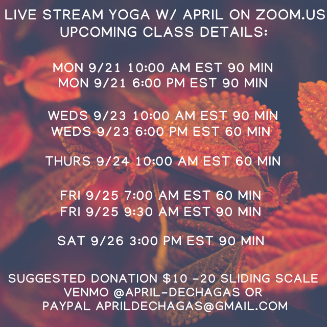 Zoom class days have changed to Wednesdays and Sundays beginning Sunday 11/12. Zoom links available via email only. If you are interested in joining Contact me here!